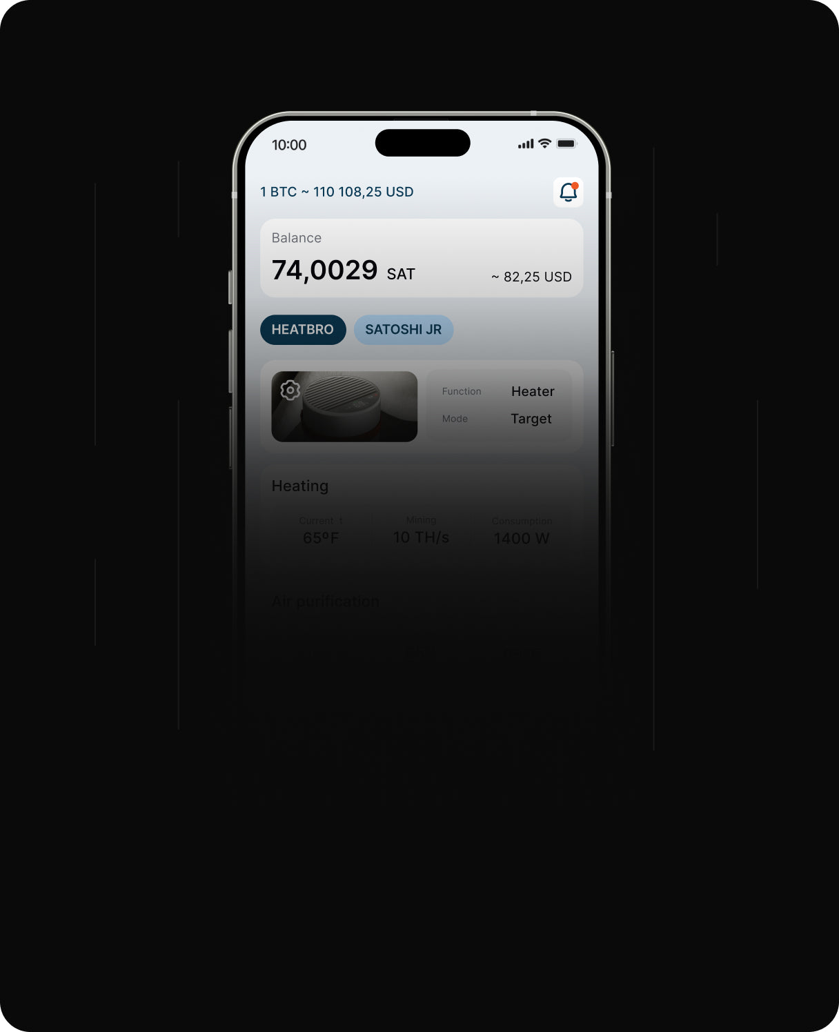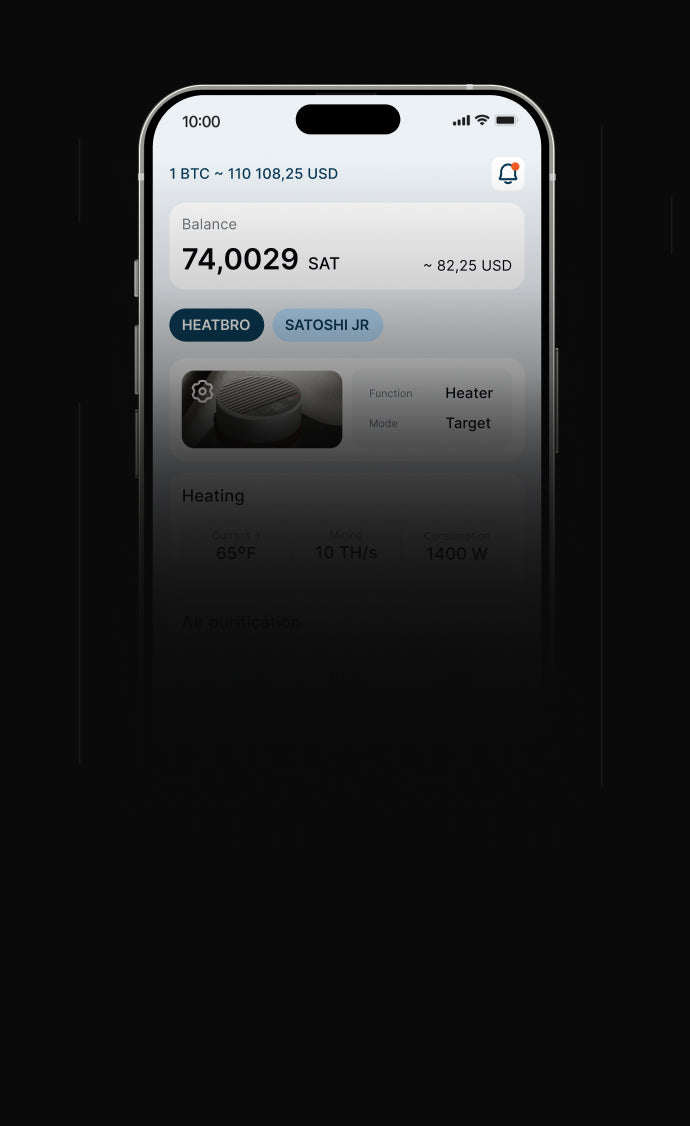 Space heater. Air purifier. Bitcoin miner. All in one device.Heat your home, earn Bitcoin.